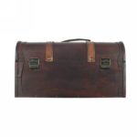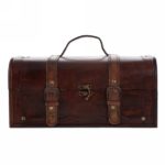 Small wooden box, chest with 2 straps and carry handle, in retro style