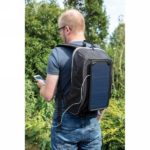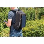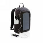 Hiking backpack with 7W solar panel power. It can charge an iPhone in 3-4 hours. Perfect for charging your phone, camera or powerbank on the go. The solar unit has 2 USB outputs for charging 2 phones simultaneously. The solar unit does not use a battery, the sunlight is transferred directly into energy. PVC free.
