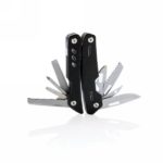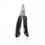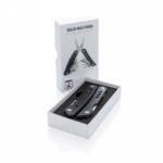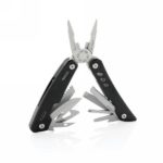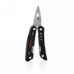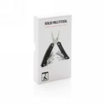 Strong and durable multitool with 12 functions. With aluminium case and stainless steel tools. Tools include: needle nose plier, regular plier, wire cutter, knife, phillips screwdriver, small flat screwdriver, saw, can opener, bottle opener, serrated knife, reamer/punch, file & large flat screwdriver. Packed in gift box.