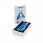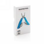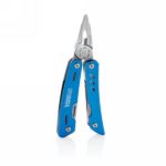 Strong and durable multitool with 12 functions. With aluminium case and stainless steel tools. Tools include: needle nose plier, regular plier, wire cutter, knife, phillips screwdriver, small flat screwdriver, saw, can opener, bottle opener, serrated knife, reamer/punch, file & large flat screwdriver. Packed in gift box.