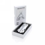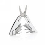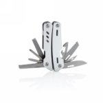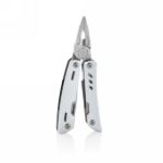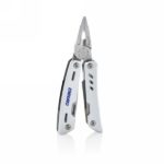 Strong and durable multitool with 12 functions. With aluminium case and stainless steel tools. Tools include: needle nose plier, regular plier, wire cutter, knife, phillips screwdriver, small flat screwdriver, saw, can opener, bottle opener, serrated knife, reamer/punch, file & large flat screwdriver. Packed in gift box.