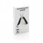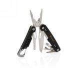 Strong and durable multitool with 11 functions. With aluminium case and stainless steel tools. Tools include: needle nose plier, regular plier, wire cutters, knife, phillips screwdriver, flat screwdriver, saw, can opener, bottle opener, wire stripper, carabiner. Packed in gift box.