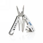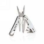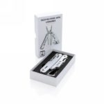 Strong and durable multitool with 11 functions. With aluminium case and stainless steel tools. Tools include: needle nose plier, regular plier, wire cutters, knife, phillips screwdriver, flat screwdriver, saw, can opener, bottle opener, wire stripper, carabiner. Packed in gift box.