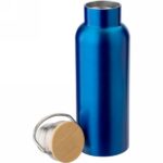 Sports bottle 500 ml, double walled, stainless steel inside and outside, bamboo screw