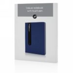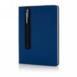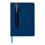 The perfect combo: A5 PU notebook with pen sleeve and a metal stylus pen. Packed in giftbox. 160 pages of 80g/m2 Inside.