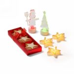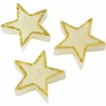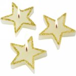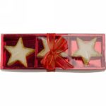 Three piece star shaped candles set in gift box with red ribbon