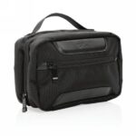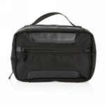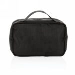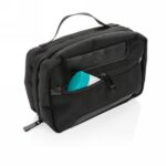 The Swiss Peak AWARE™ RPET Voyager toiletry bag is made from durable 1680D recycled polyester with rich PU details that give the toiletry bag a very sophisticated look. The toiletry bag has two roomy zipper compartments to hold all your toiletry essentials. The exterior is made from 1680D recycled polyester and the lining is 150D recycled polyester. With AWARE™ tracer that validates the genuine use of recycled materials. Each toiletry bag saves 6 litres of water and has reused 10.14 0.5L PET bottles. 2% of proceeds of each product sold containing AWARE™ will be donated to Water.org.