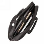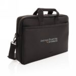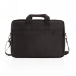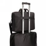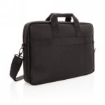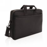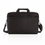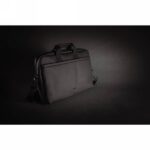 Take your commuting style up a notch with this structured bag made with soft vegan leather in a clean and sleek style with tonal zippers. The laptop bag features a top zip closure, top carrying handle, adjustable shoulder strap with shoulder pad, zipper external front pocket, interior open pocket, luggage strap and a 15.6 inch laptop pocket with Velcro closure. Exterior 100% PU, interior 100% 210D polyester. PVC free.