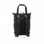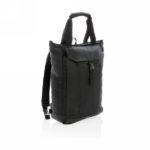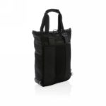 This versatile bag can be carried on the shoulder, by hand or as a backpack. Including padded 15″ laptop compartment and RFID protected sleeves. PVC free.