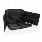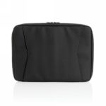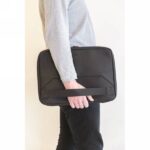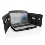 Work in style anywhere with this structured workstation made with soft vegan leather in a clean and sleek style with tonal zippers. The workstation features all around zipper closure and carrying strap so you can carry it under your arm. On the interior you will find a 15.6 inch laptop pocket with Velcro closure. When opening the two panels the sleeve will be transformed into a workstation for any location. Each panel features 3 slip pockets and on the inside you will find another 5 card slots and one big sleeve compartment for your documents. On the back the sleeve features a luggage strap. Exterior 100% PU, interior 100% 210D polyester. PVC free.