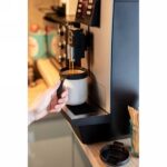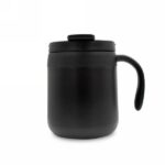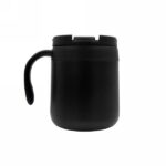 Thermo mug 330 ml with handle, double vacuum walled, stainless steel inside and outside, plastic lid, suitable for single hand operation, mat finish, thermal insulation scale: 2