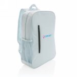 Keep your hands free and your stuff cold. The Tierra backpack is designed with maximum portability in mind. Great for hiking and picnics. The backpack holds 12 cans or 8 cans and 2 wine bottles. A zippered front pockets holds your keys and other accessories. Exterior 100% 600D polyester, interior 210D polyester and PEVA. PVC free.