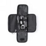 Tool set with 19 pcs including screwdriver with several bits and hex keys, in pouch with carabiner
