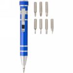 Tool set in gift box, telescopic torch with 3 LED lights and pen shaped screwdriver with 4 flat headed and 4 Phillips screwdriver bits