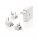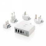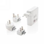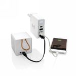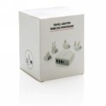 Unique design travel adapter that allows you to charge wherever you go in the world. Simply plug on the included plug to fit the wall socket at your destination or at home. The adapter is unique because it can be used at home to charge your mobile devices but can also be taken away with you as a powerbank. The travel adapter has 3 USB ports and one type C port with a total output of 4.2A. The powerbank has a capacity of 6.700 mAh which is enough to charge your mobile device 3 times on the go. When connected the powerbank will automatically be charged. The output via wireless charging is 5V/1A 5W. The charger comes with a 4 plugs: EU, UK, USA and Australia and a microfiber pouch to take them on your travels. Input: AC 100-240V 50/60HZ, Output: 5V/4.2A.