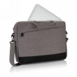 Protect and store your 15.6” laptop in style in this trendy 600D duo tone polyester laptop bag. 2 sided main compartment for your gear. Front slanted zippered accessory pocket. PVC Free.