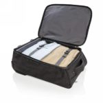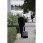 Easy access foldable 600D two tone polyester 2 wheel trolley with large main compartment and front zippered pocket. Quick and easy to fold/unfold and store at home.