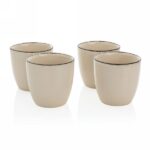 Add simple elegance to any meal with this Ukiyo 4 pc ceramic drinkware set. Perfect for casual dining. Clean white design with black-detailed rim. Presented in a kraft gift box. Capacity 120ml.