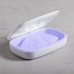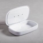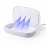 UV-C sterilizer to destroy microorganisms and bacteria from surfaces of daily use objects placed inside such as phones, keys, glasses etc., UVC light: 2×0.5W, UVA light: 1×0.2W, wavelength 270-280 nm, 5V DC 1A, matt finish, USB type C cable included, avoid contact with skin and eyes