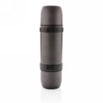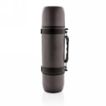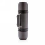 Stainless steel double wall vacuum flask in an elegant design with grip and shoulder strap and contains two matching cups for an optimal drinking experience. Leakproof and handwash only. Content 625ml.