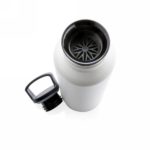 Powder coated double wall vacuum insulated bottle. 2-in-1 lid with filter perfect for hot tea or infused water. Standard mouth opening ideal for sipping and adding ice cubes. Built to last, great bottle for any season. 304 SS inner and 201 SS outer keeps your drinks hot 5h and cold 15h. Content: 600ml._x000D_