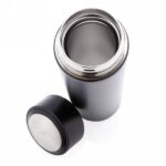 Keep coffee or tea nice and toasty in this vacuum stainless bottle with brushed metal lid. The bottle features a leak-proof screw lid and allows for drinking from any side. The wide mouth opening allows for easy cleaning. Capacity 450ml. BPA free.