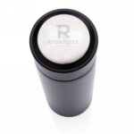 400 ml stainless steel outside and PP inside mug with lid and base in black.