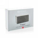 The Vogue 6W wireless speaker combines two essential functions of modern life: -listen to your favorite music and charge your mobile device. The trendy fabric design is perfect for your desk, at home or on the go. The speaker uses wireless BT 3.0 for smooth connection and has an operating distance up to 10 metres. With handsfree function. The 4000 mAh battery allows you to play music for up to 10 hours or charge your mobile phone twice (depending on the size of your phone’s battery) Input 5V/1A Output 5V/1A. Registered design®