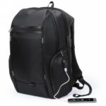 Waterproof backpack with padded compartment for laptop, USB connection (power-bank not included), zipped front pocket, padded back and shoulder straps