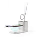 Multifunctional wheat straw lamp, 12 LED lights, adjustable light intensity, flexible, wireless charger 10W, works with mobile phones with inductive charging function, phone stand, pen holder