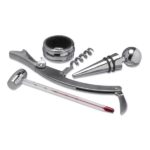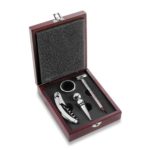 Wine set 4 pcs in wooden box, wine accessories: waiter’s knife, ring, wine stopper, thermometer