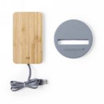 Wireless charger 5W with bamboo element, phone stand, works with mobile phones with inductive charging function, input 5V/2A, wireless output 5V/1A, micro USB cable included