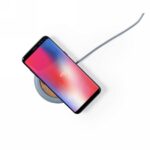 Wireless charger 5W, works with mobile phones with inductive charging function, made of limestone cement and natural cork, micro USB cable included
