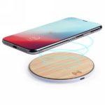 Wireless charger 5W with bamboo front part, works with mobile phones with inductive charging function, micro USB input 5V/1A, micro USB cable included