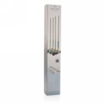 Beautifully crafted 4 player wooden croquet set that includes 4 croquet hammers, 4 balls and 10 metal hoops. Simply place the hoops in a prefered position and make two teams. One team plays 2 designated balls and the other team play the other 2. If one team succeeds to hit the ball through a hoop they get another strike. If not: it’s the other team turn. The winner is the team who manages to score all hoops with both balls. Hammer head and balls are made from Pine wood and handle and pins from Eucalyptus wood. Presented in a cotton pouch with rule book.