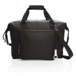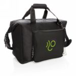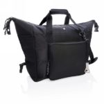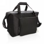 Deluxe 1680D and 600D polyester cooler tote bag with extra-large zipped main compartment and zipped front pocket. Can be easily transformed to a cooler duffle bag by closing the side straps. Huge 40L storage space; fits up to 10 x 1.5L bottles or 52 cans. Double reinforced carrying handles. Removable adjustable shoulder strap. Including beer opener. PEVA insulation.