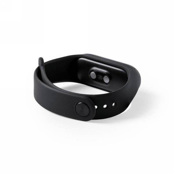 Monitor aktywności, bezprzewodowy zegarek wielofunkcyjny BT 4.0, termometr z funkcją automatycznego mierzenia temperatury ciała co 5 min. i synchronizacji z aplikacją do rejestrowania wartości (temperatura ciała oraz tętno), wyświetlacz TFT 0.96", bateria 90 mAh 3.7V, zasięg do 10 m, kompatybilny z iOS 9.0 (lub nowsze) lub Android 5.0 (lub nowsze), ładowany przez USB, kabel w komplecie, pozostałe funkcje: alarm, krokomierz, licznik spalonych kalorii, wyzwalacz migawki, funkcja odbierania połączeń, powiadomienia z aplikacji, wibracje, zabezpieczenie przed zgubieniem, monitor snu, pulsometr, pulsoksymetr, kalendarz
