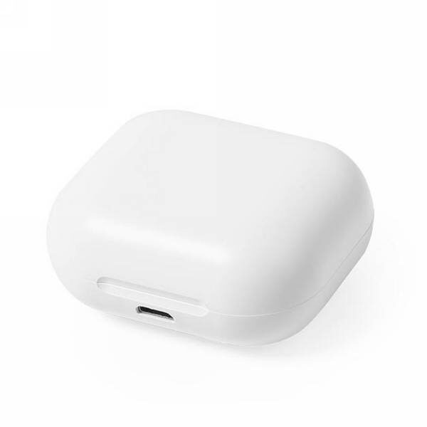 Bezprzewodowe słuchawki duszne, BT 5.1, wykonane z trwałego ABS, funkcja automatycznego parowania, wbudowany mikrofon, etui z akumulatorem 300 mAh pełniące funkcję stacji ładującej w komplecie, akumulator słuchawek o pojemności 35 mAh umożliwia odtwarzanie muzyki na średnim poziomie głośności do 3 godzin, ponowne naładowanie za pomocą etui w 1,5 godziny, zasięg do 10 m, 3 rozmiary nakładek dousznych w komplecie, kabel USB typu C z TPE bez dodatku PVC w komplecie