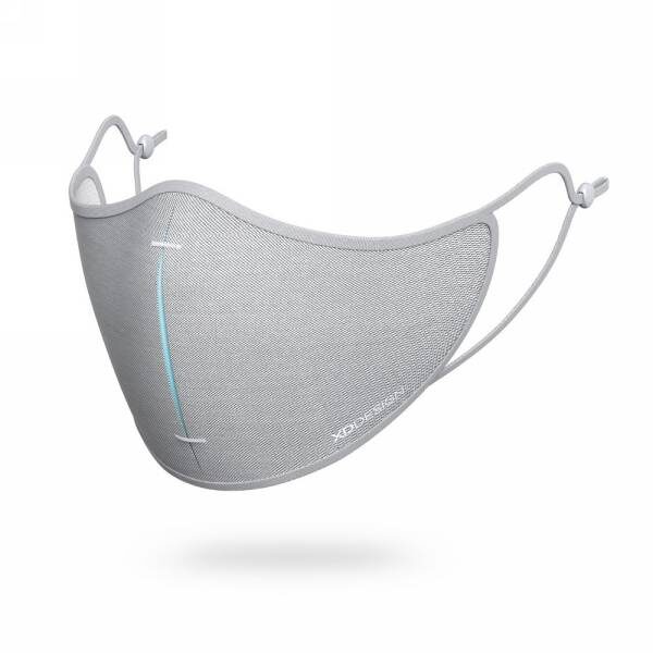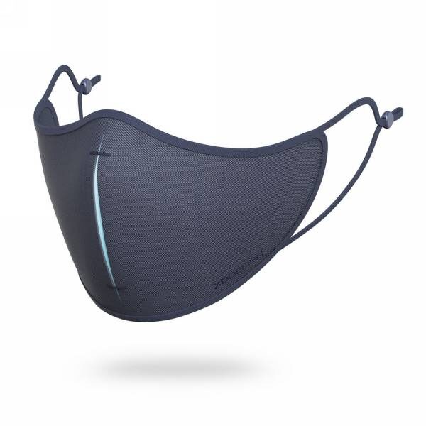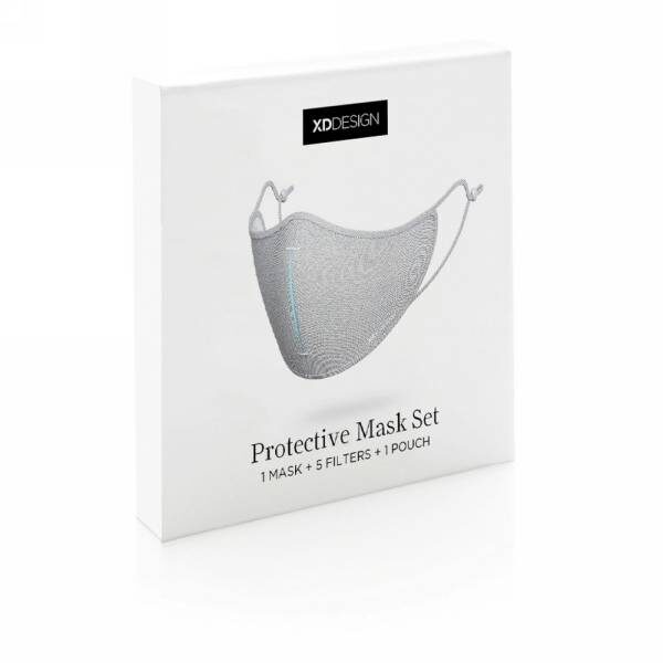 Maseczka wielokrotnego użytku, trójwarstwowa, z przodu materiał ViralOff®, który usuwa 99% wirusów w ciągu 2 godzin, w środku wykonany z testowanego laboratoryjnie materiału Hyproof® Nanofibre filtr o skuteczności filtrowania do 95%, wewnętrzna warstwa z poliestru, maska posiada trójwymiarową strukturę podbródka oraz wyprofilowany kształt na nos ułatwiający oddychanie, w komplecie 5 filtrów oraz etui, w rozumieniu rozporządzenia EU/2017/745 maseczka jest produktem niemedycznym, nie jest również osobistym wyposażeniem ochronnym w rozumieniu rozporządzenia EU/2016/425