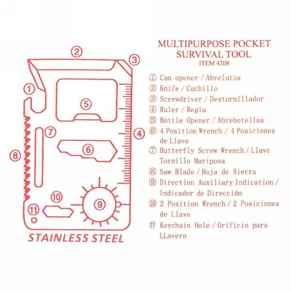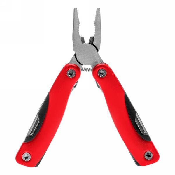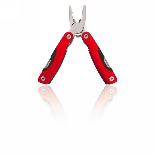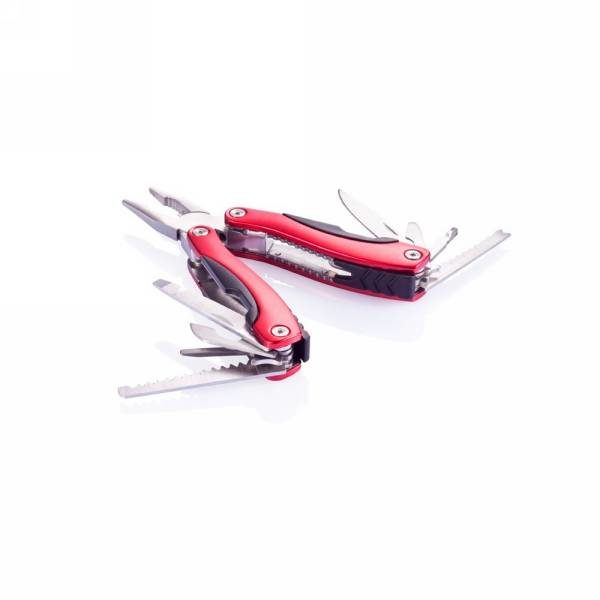 Bardzo wytrzymałe narzędzie wielofunkcyjne, wykonane ze stali nierdzewnej, aluminiowy uchwyt, 10 funkcji: młotek, kombinerki, przecinak do kabli i drutu, przyrząd do wyciągania gwoździ, nóż, piła, śrubokręt krzyżakowy, otwieracz do butelek, śrubokręt płaski, pilnik, etui z wysokiej jakości poliestru 1680D w komplecie, w ozdobnym pudełku