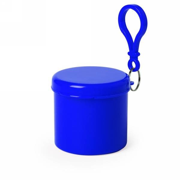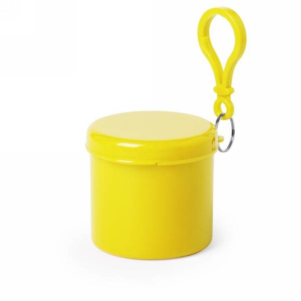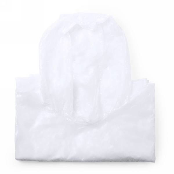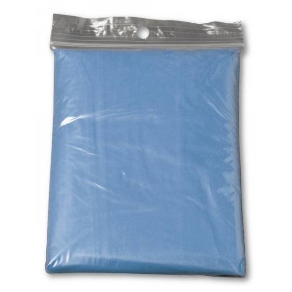 Peleryna przeciwdeszczowa zamykana z dwóch stron na 2 guziki, w dopasowanym kolorystycznie pokrowcu