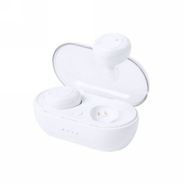 Bezprzewodowe słuchawki duszne, BT 5.0, wykonane z ABS, wbudowany mikrofon, etui z akumulatorem 400 mAh pełniące funkcję stacji ładującej w komplecie, akumulator słuchawek o pojemności 40 mAh umożliwia odtwarzanie muzyki na średnim poziomie głośności do 2 godzin, ponowne naładowanie za pomocą etui w 1 godzinę, zasięg do 10 m, 3 rozmiary nakładek dousznych w komplecie