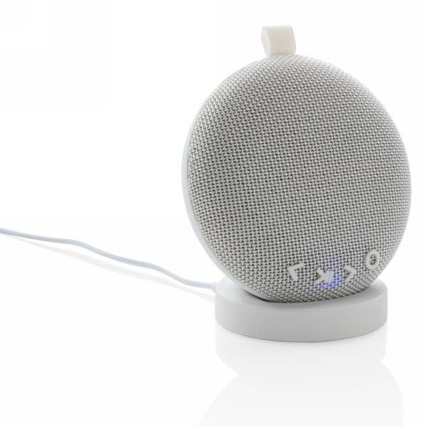 Głośnik bezprzewodowy 5W, wodoodporny (IPX6), wbudowany akumulator o pojemności 1200 mAh umożliwia odtwarzanie muzyki do 8 godzin, ponowne naładowanie w 5 godzin, głośnik ładowany bezprzewodowo po umieszczeniu na stacji ładującej, stacja ładująca posiada wyjście USB do ładowania za pomocą kabla, wejście stacji ładującej 5V/1A, wyjście USB 5V/1A, kabel micro USB 120 cm wykonany z TPE bez dodatku PVC w komplecie