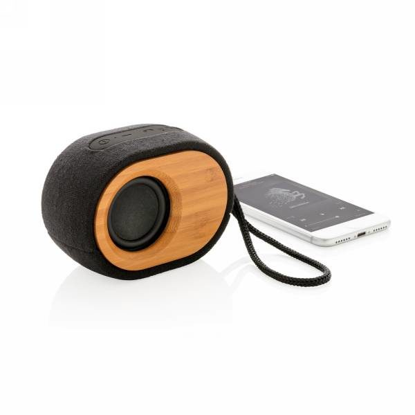 Bambusowy głośnik bezprzewodowy 10W, BT 4.2, wysokiej jakości komponenty wewnątrz gwarantujące długotrwałe użytkowanie produktu, wysoka jakość dźwięku, wykonany został zgodnie z ideą zrównoważonego rozwoju z wykorzystaniem trwałych materiałów, wytrzymałego bambusa i tkaniny (30% organicznej bawełny, 40% konopi, 30% z PET z recyklingu), w pełni naładowany akumulator o pojemności 2200 mAh umożliwia odtwarzanie muzyki do 6 godzin, zasięg do 10 m, opakowanie głośnika nie zawiera plastiku, wzór zastrzeżony®