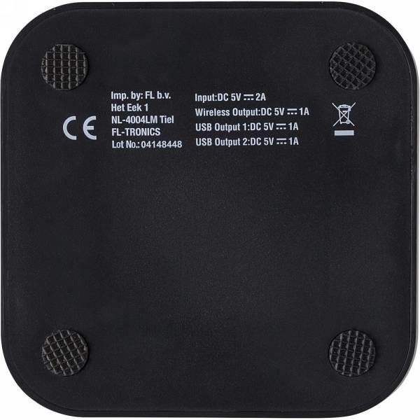 Ładowarka bezprzewodowa 5W, wykonana z wysokiej jakości PU i ABS, wyjścia USB i USB typu C do ładowania za pomocą kabla, bezprzewodowe ładowanie jest kompatybilne ze wszystkimi urządzeniami posiadającymi możliwość ładowania indukcyjnego, wejście 5V/2A, wyjście bezprzewodowe 5V/1A 5W, wyjście USB/USB typu C 5V/1A, nylonowy kabel micro USB 150 cm w komplecie, w ozdobnym pudełku
