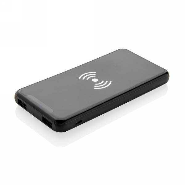 Cienki bezprzewodowy power bank 4000 mAh, ładowarka bezprzewodowa 5W, 4 diody wskazujące poziom naładowania, wykonany z ABS, wbudowany akumulator litowo-polimerowy klasy A o dużej gęstości i trwałości, możliwość ładowania kablem i bezprzewodowo, w pełni naładowane urządzenie może naładować telefon do 2 razy, bezprzewodowe ładowanie jest kompatybilne ze wszystkimi urządzeniami posiadającymi możliwość ładowania indukcyjnego, wejście micro USB 5V/2A, wyjście 5V/2A, wyjście bezprzewodowe 5W 5V/1A, kabel micro USB w komplecie