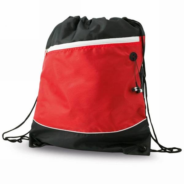 Worek ze sznurkiem, kieszeń przednia na zamek błyskawiczny, miejsce na słuchawki