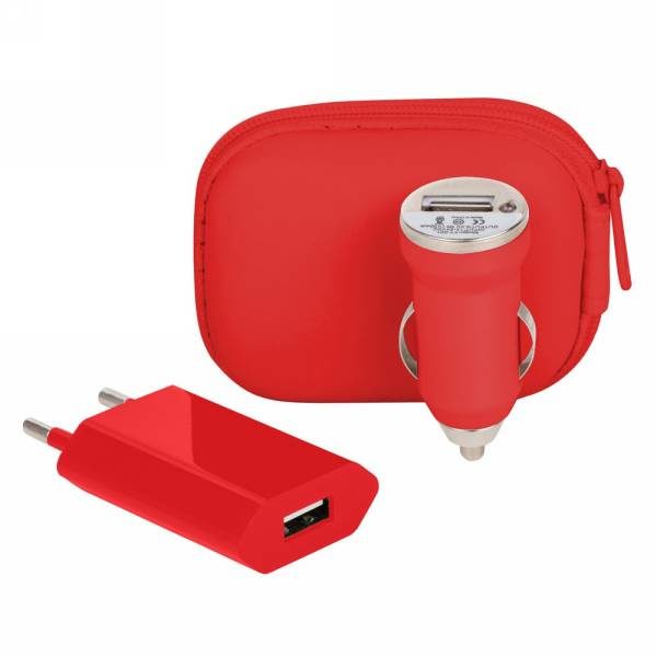 Podręczny zestaw w etui, adapter sieciowy (wejście 100-240V, 50/60HZ ±0.3A, wyjście 5V/1A) i ładowarka samochodowa 1000 mA (wejście 12-24V, wyjście 5V/1A)