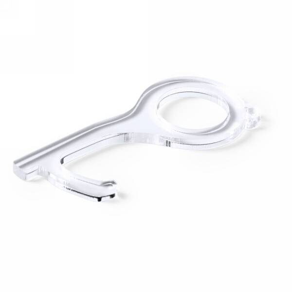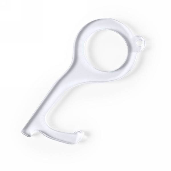 Uchwyt do bezdotykowego otwierania drzwi i korzystania z powierzchni wspólnych takich jak klamki, włączniki, bankomaty itp., wykonany z akrylu