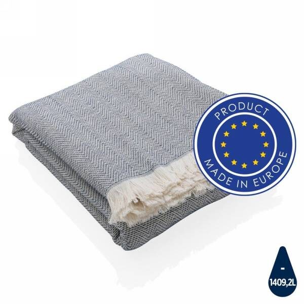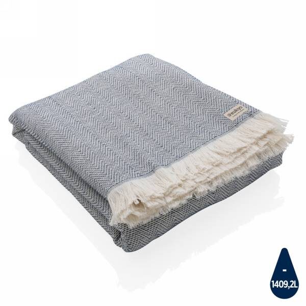 Ręcznik, szybkoschnący, odporny na pleśń, łatwy w czyszczeniu, można go wykorzystać również jako koc, obrus oraz ręcznik do jogi, wykonany z mieszanki 78% bawełny z certyfikatem OEKO-TEX (w procesie produkcji nie są wykorzystane żadne szkodliwe substancje lub barwniki) oraz w 22% z bawełny z recyklingu, każdy ręcznik pozwala na oszczędzenie 1409,2 l wody, dzięki zastosowaniu technologii śledzącej AWARE™ wykorzystane włókna są identyfikowalne z pochodzenia, 2% wpływów z każdego sprzedanego produktu jest przekazywane na rzecz Water.org, można prać w pralce, wymiar 100 x 180 cm (wyprodukowany w Europie / made in Europe)